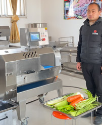 切菜機(jī)具備雙調(diào)頻功能,一端是切葉菜類,如長(zhǎng)蔥,蒜苗,韭菜,芹菜,白菜,青菜等,一端是切球根莖類,如蘿卜,土豆,紅薯,芋頭,筍,洋蔥,茄子,蘋果,生姜等。根莖部分可切片(厚薄度2-10毫米可選),根莖部分切絲(2-10mm方絲可選),根莖部分切?。?mm,10mm,12mm,15mm,20mm),葉菜部分切段切條(長(zhǎng)度1-90mm可調(diào)),具備雙調(diào)頻功能。